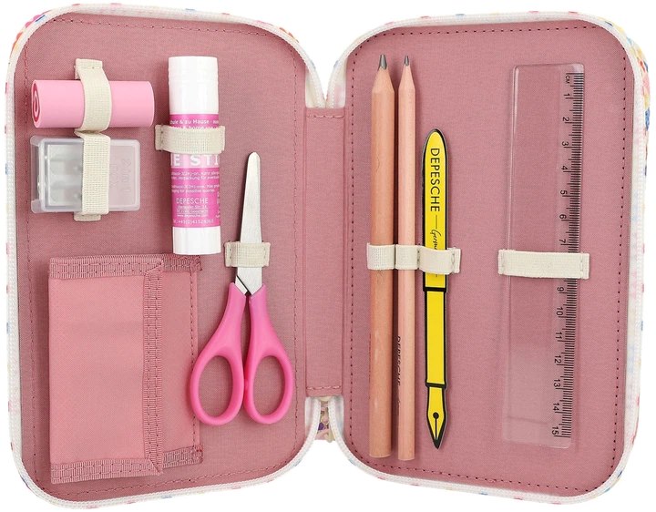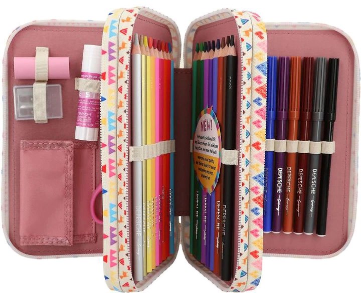 A Top Model 3 emeletes, töltött tolltartó praktikus és divatos választás az iskolába. A rózsaszín és bézs színvilág elegáns megjelenést kölcsönöz, míg az oldala színes mintával teszi igazán egyedivé. A több szintes kialakításnak köszönhetően átláthatóan rendszerezhetők benne az írószerek, a gazdag felszereltség pedig gondoskodik róla, hogy minden szükséges eszköz kéznél legyen a tanórákon.