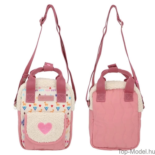 A Top Model rózsaszín, mintás oldaltáska divatos és praktikus kiegészítő a mindennapokra. Könnyű kialakításának és kényelmes vállpántjának köszönhetően ideális apró személyes tárgyak tárolására. Stílusos megjelenése tökéletesen kiegészíti az iskolai vagy szabadidős szetteket.