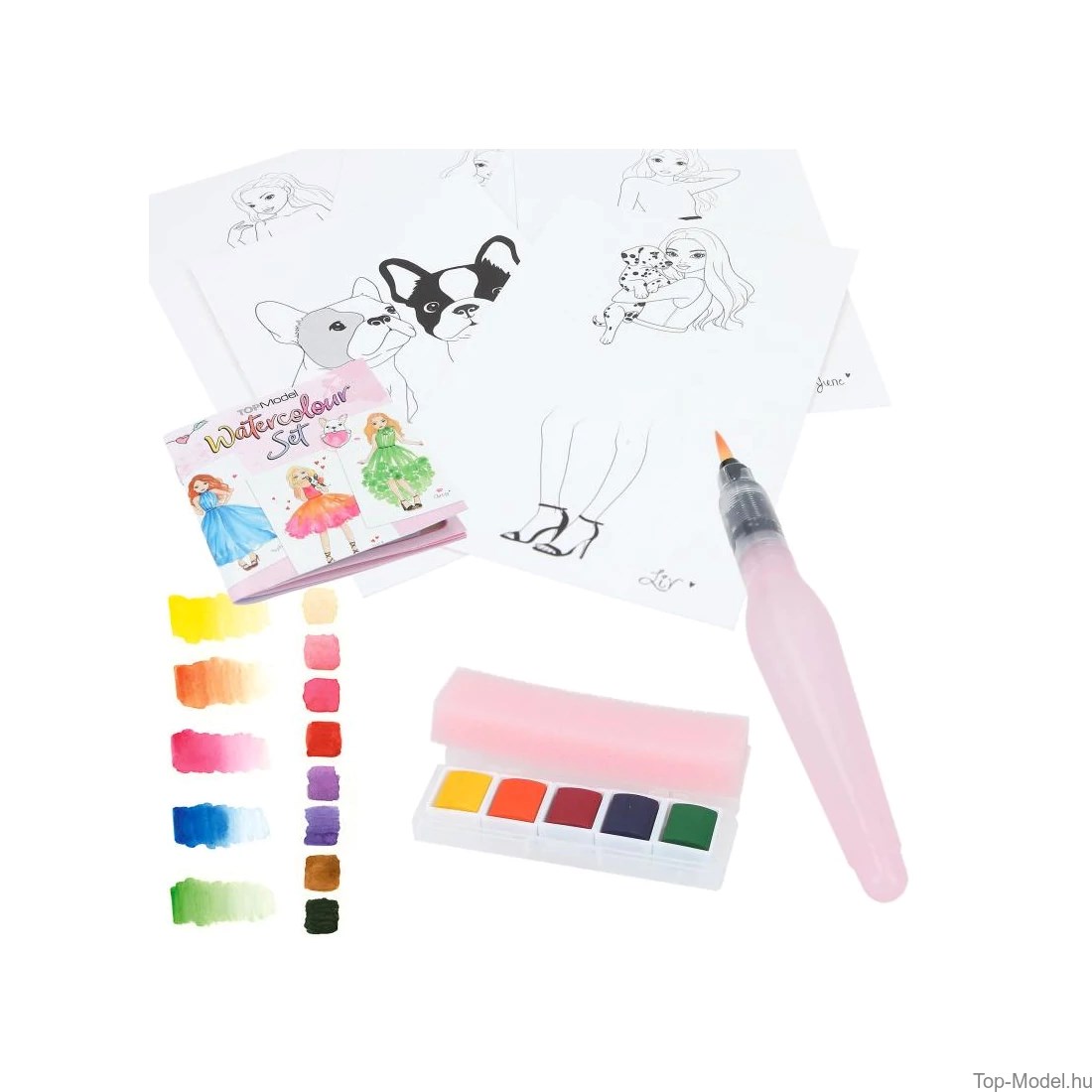 A Top Model vízfestékes szett mindent tartalmaz, amire egy kreatív alkotáshoz szükség van: színezőlapokat, élénk vízfestékeket, vízfestékecsetet és szivacsot. Tökéletes választás a gyerekeknek, akik szívesen fedezik fel a festés örömét és fejlesztik képzelőerejüket.