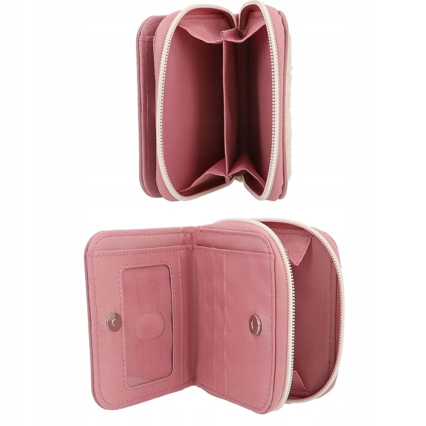 A Top Model rózsaszín-bézs pénztárca elegáns és játékos kombinációja a színeknek. Az egyik oldala bolyhos részlettel díszített, ami különleges, puha textúrát ad. Praktikus kialakítása révén aprópénz, bankjegyek és kártyák tárolására egyaránt alkalmas.