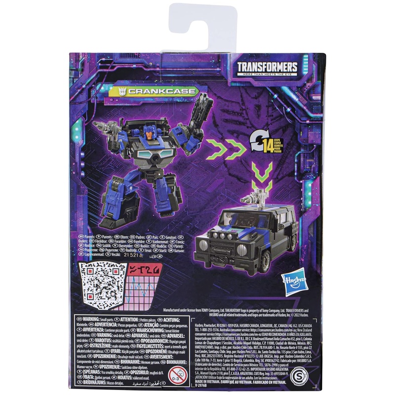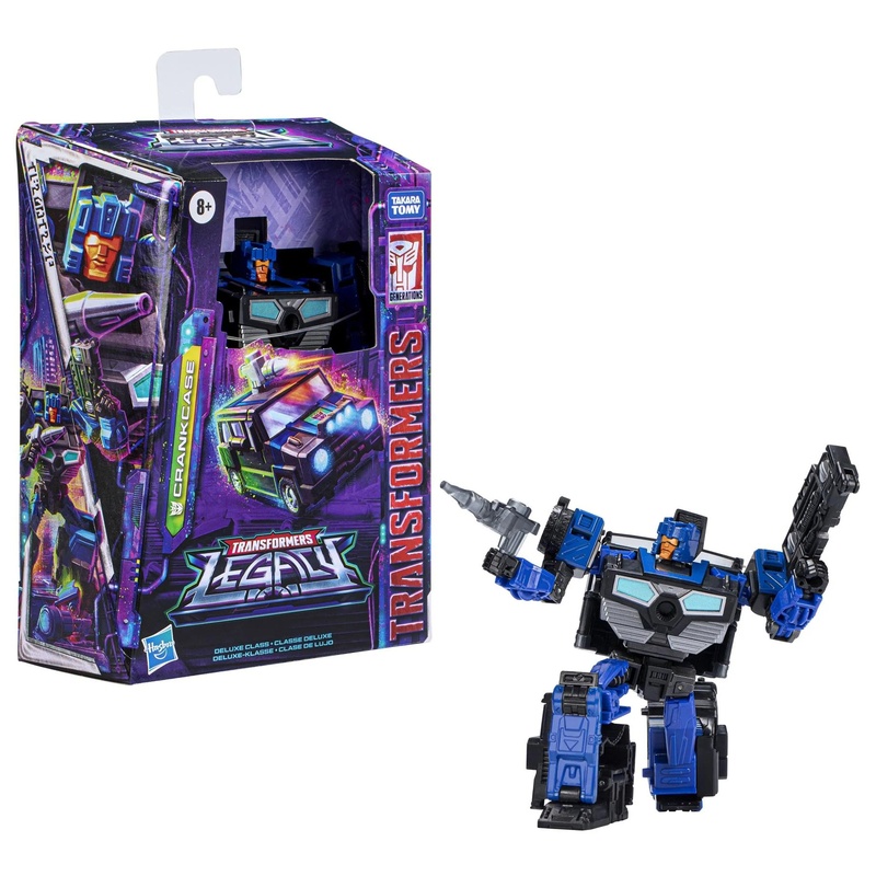 Crankcase a The Transformers világához tartozó karakter, a Transformers franchise része. Ez a Legacy Deluxe figura robot módból terepjáró módba alakítható 14 lépésben, és a jármű elején lévő rácsrész levehető, hogy előkerüljön a nagy blaster kiegészítő. Kb. 14 cm-es méret, több ponton mozgatható kivitel, polcra és vitrinbe is jó választás.