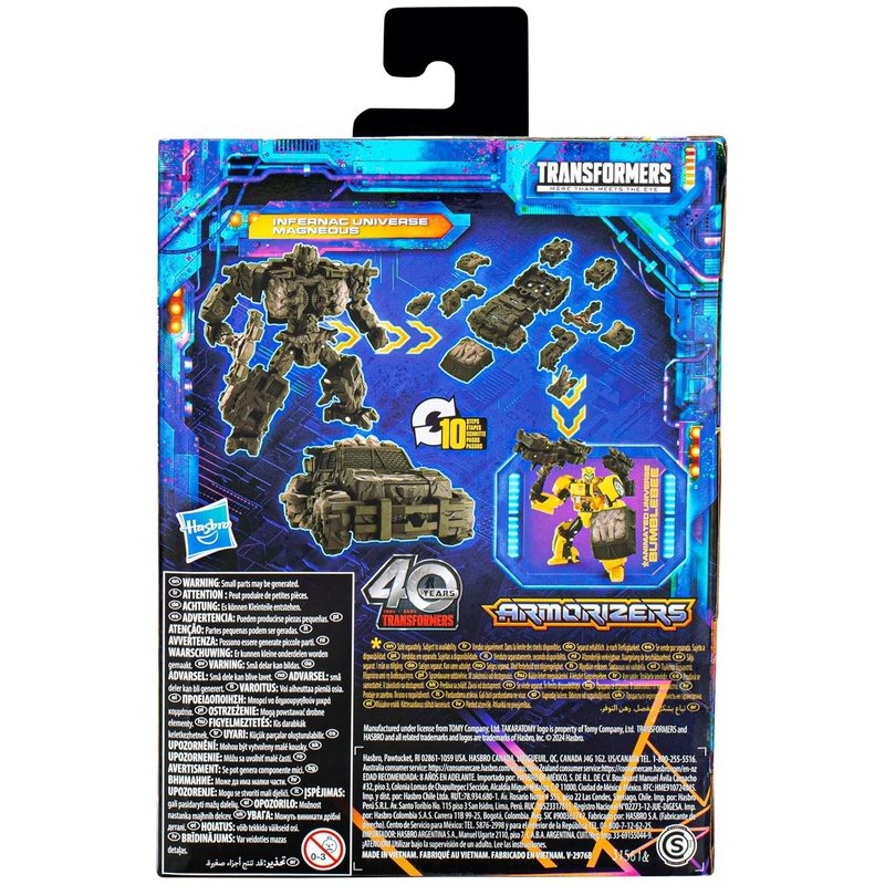 Magneous a Transformers franchise-hoz kapcsolódó karakter, ez a Legacy United Deluxe kiadás pedig egy kb. 14 cm magas, mozgatható figura. Rock creature formából offroad jármű formába alakítható 10 lépésben, így játékhoz és gyűjteménybe is jó választás. A csomagban rock axe és pajzs kiegészítőt adnak hozzá, amikkel látványos pózokba állítható polcon vagy vitrinben. 8 éves kortól ajánlott.
