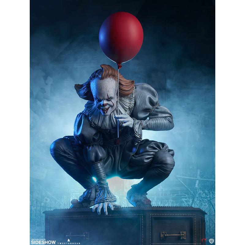 Merülj el Stephen King It horrorfilm hátborzongató világában ezzel a lenyűgözően részletgazdag maquette figurával! A 330 mm-es, 1:5 méretarányú Pennywise mozgatható fejjel és cserélhető tartozékokkal rendelkezik - tökéletes bármelyik horror- vagy filmgyűjteményhez. A figura tartalmazza a legendás vörös lufit, tovább fokozva a borzongásos hangulatot .