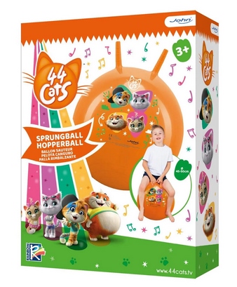 Vidám cicás ugráló labda (hopper labda) 45-50 cm átmérővel, strapabíró és rugalmas PVC anyagból készült, amely hosszú távon is ellenáll az intenzív használatnak; a felfújható kialakítás és a masszív, ergonomikus fogantyú (fülek) stabil és biztonságos kapaszkodást biztosít ugrálás közben; ideális beltéri és kültéri játékhoz egyaránt, miközben játékosan fejleszti az egyensúlyt, a mozgáskoordinációt és az izomerőt; könnyű, mégis tartós kialakítású, kompakt mérete miatt egyszerűen tárolható és szállítható; 3 éves kortól ajánlott, tökéletes választás aktív, mozgáskedvelő gyerekek számára, akik imádják a vidám, állatmintás játékokat.