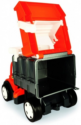 A Wader Gigant szemetesautó 67016 egy nagy méretű műanyag kukásautó játék, amely akár 60 cm hosszú, és strapabíró, időjárás-álló anyagból készült a hosszú távú kültéri vagy beltéri játékhoz. A jármű nyitható hátsó ajtóval és mozgatható emelővel rendelkezik, amelyek segítségével a hozzá tartozó konténert ki lehet üríteni és rögzíteni, így még élethűbb szerepjátékot tesz lehetővé. A masszív kialakítás és részletes funkciók játék közben fejlesztik a gyermek kreativitását és koordinációját, miközben szórakoztató módon utánozza a valódi kukásautók működését.