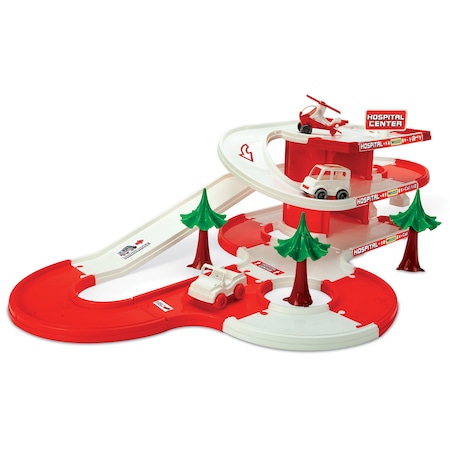 Biztonságos műanyagból készült. 4,8 m hosszú pálya,belső szélessége 9 cm. A csomag tartalmaz egy mentőautót és egy helikoptert. 3 éves kortól ajánlott.