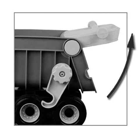 Dömper billenthető és nyitható platóval. Hosszúság. 38 cm. Szélesség. 20 cm. Magasság. 25 cm. Anyaga. Műanyag.