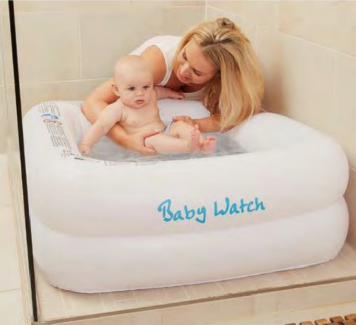 Ez a termék a Baby Watch felfújható babaülőke / fürdető medence, amely biztonságos és kényelmes megoldást kínál a legkisebbek számára fürdetéshez, pancsoláshoz vagy akár zuhanyzáshoz, stabil, magas peremű kialakítása segíti a baba megtartását ülő helyzetben, így nyugodtabb és könnyebb a mindennapi fürdetés, Méret: 85 x 85 x 33 cm, Anyag: strapabíró PVC/vinyl, amely könnyen tisztítható és ellenáll a nedvességnek, Korosztály: csecsemők és kisgyermekek számára ajánlott, általában 6 hónapos kortól, ez a praktikus babaülőke biztonságos, kompakt és sokoldalú megoldás a mindennapi vízi használathoz és fürdetéshez.