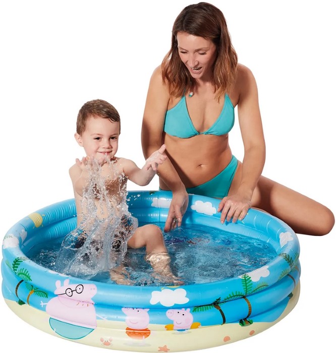 Ez a Happy People Peppa malac 3 gyűrűs felfújható gyerekmedence ideális választás kisebb gyermekek számára nyári kerti pancsoláshoz, amely stabil, három különálló légkamrás kialakításának köszönhetően biztonságos és kényelmes vízi játékteret biztosít otthoni használatra. A vidám Peppa malac mintázat játékos megjelenést ad, miközben a puha, felfújható falak és a sekély vízmélység gondtalan használatot tesznek lehetővé. Méret: 100 x 23 cm, amely egy-két kisgyermek számára ideális pancsolófelületet biztosít. Anyag: tartós PVC alapú felfújható műanyag, biztonsági szelepekkel a gyors felfújáshoz és leeresztéshez. Korosztály: 2 éves kortól ajánlott, kizárólag felnőtt felügyelete mellett használható. Gyorsan felállítható, leereszthető és kis helyen tárolható, így praktikus megoldás nyári vízi játékhoz és hűsöléshez.