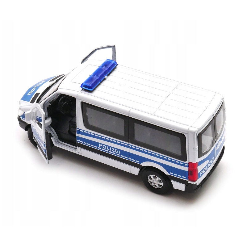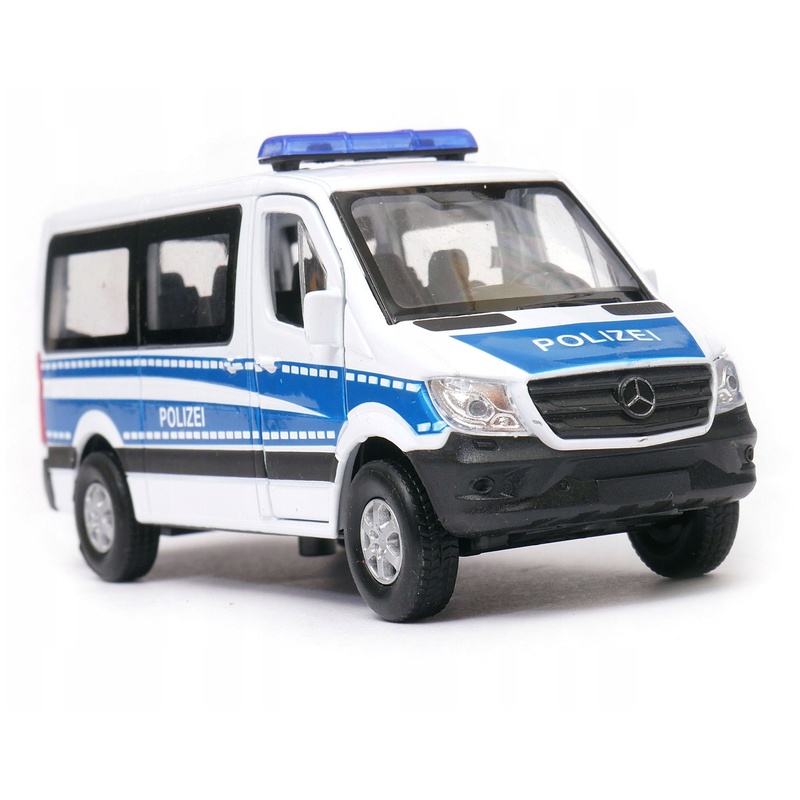 Welly fém modelljármű 1/34-1/39 méretarányban, rendőrségi festéssel. A Sprinter Traveliner típust több országban is használnak rendőrségi szállító és járőrkiegészítő járműként, ezért a rendőrautós kollekciókban jó kiegészítő a klasszikus személyautók mellé. Guruló kerekekkel készült, a nagyobb kasztni miatt polcon is látványos, játékhoz pedig praktikus, mert stabilan mozgatható.