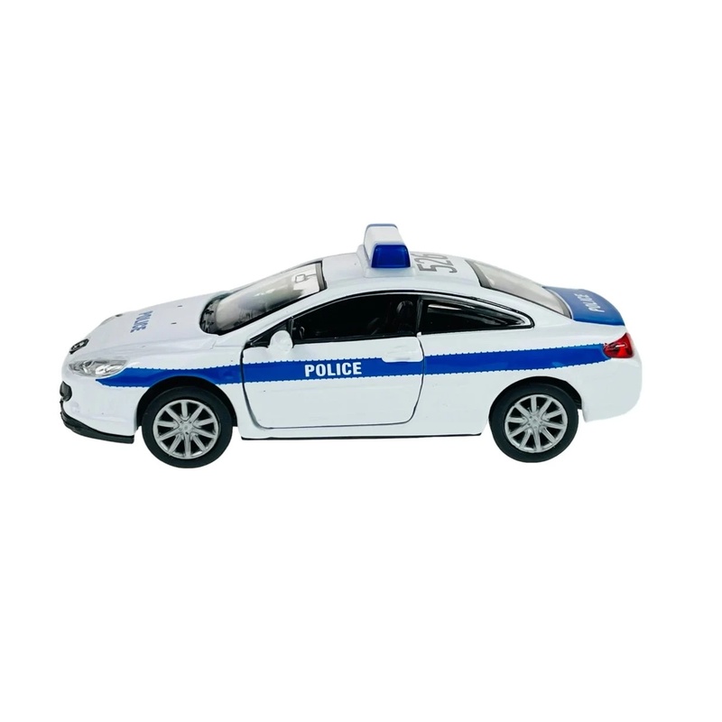 Welly fém modellautó 1/34-1/39 méretarányban, rendőrségi dekorral. A 407 Coupé kupés vonalvezetése miatt különlegesebb darab a police szortimentben, mert nem a megszokott sedan vagy SUV forma. Guruló kerekekkel készült, polcon szépen kiegészíti a vegyes rendőrautós válogatást, játékhoz pedig stabil, jól kezelhető.
