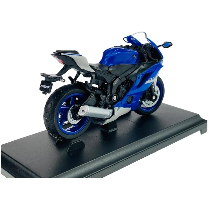 Welly fém modellmotor 1/18 méretarányban, guruló kerekekkel. A Yamaha YZF-R6 egy igazi sportmotor forma, a kék szín pedig kifejezetten jól áll neki, gyűjteményben rögtön sportos karaktert ad. A részletek arányosak, polcon szuperül működik más sportmotor modellek mellett is, és önmagában is látványos darab. Játékhoz kevésbé, inkább dekorációra és gyűjtéshez ideális.