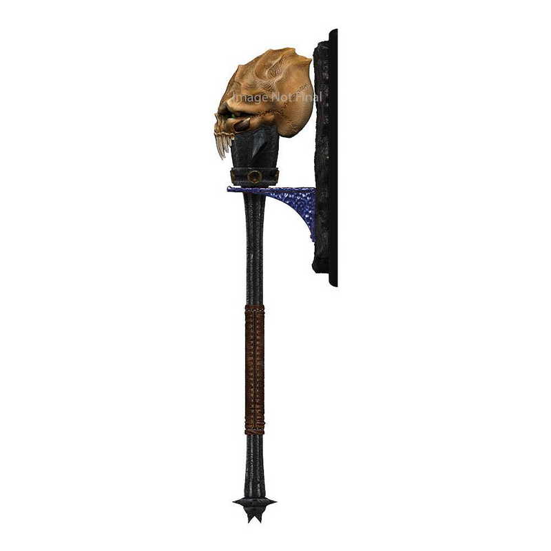 A hírhedt koponyás jogar életnagyságú másolata, amelyet Orcus, az élőhalottak démonúrja viselt.