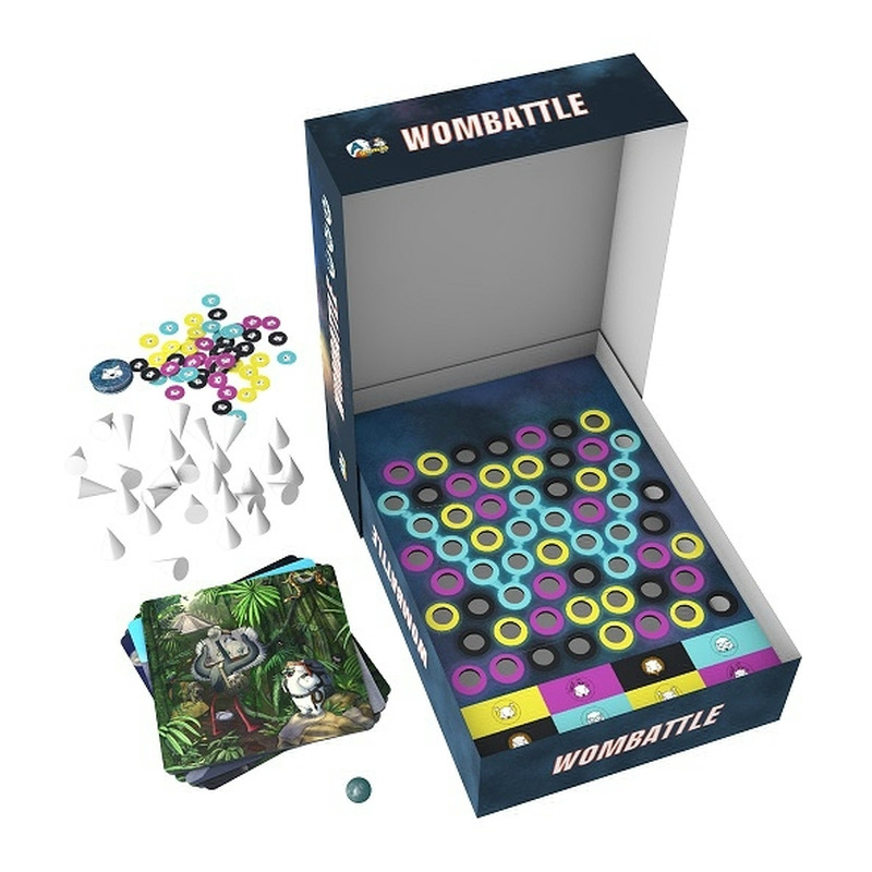 A Wombatcsatába bárki benevezhet, de senki sem győzheti le a Wombatot! Nem is hinnéd, mire képes egy Wombat a győzelemért... Egy wombat bármilyen nehézséget képes legyőzni, ha valódi nyeremény a tét! Te meddig mennél el az áldozatért? A Wombattle társasjáték még a legügyesebb partijátékosokat is meglepi: a jutalom valódi, két győztes van, az innovatív dobótábla és -labda készlet pedig egyedülálló játékteret teremt, ahol felfedezhetik a játszótársak rejtett tehetségeit és arcát.