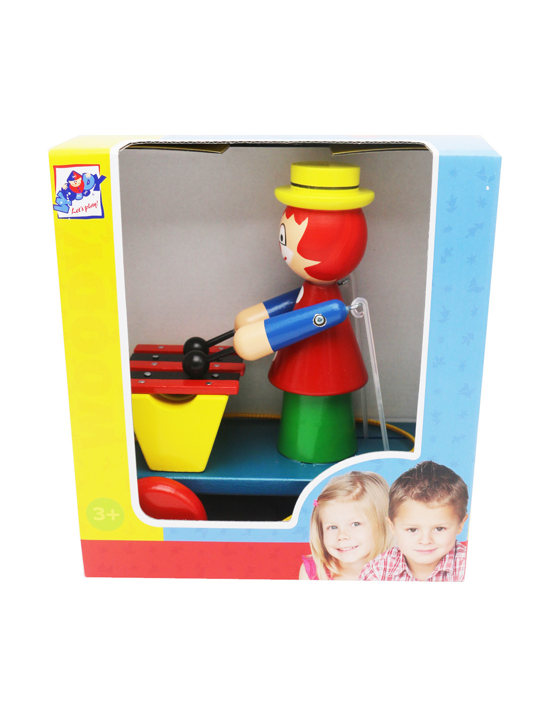 Színes bohóc fogad ezen a kis fa kocsin. Barátkozz meg vele, mert ha szaladsz előtt és közben magad után húzod, rázendít a kedvenc xilofonjára. Élvezd a nótát és az önfeledt játékot a Woody fa bohócával.