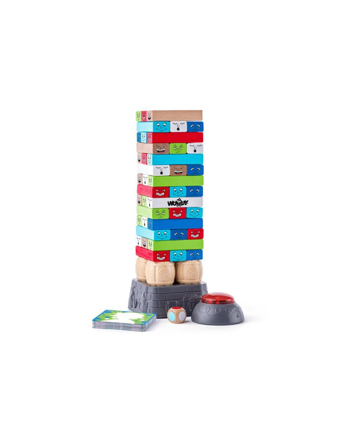 Unod már a hagyományos jengát? Csak dobja a kockával, majd a kapot színnek megfelelő hasábot ki kell húni a toronyból! Ám vigyázz, minderre most nincs akármennyi időd! Az időzítő 15 vagy 30 másodperc múlva jelez, ha addig nem tudod kihúzni a hasábot, akkor a talapzat ledobja magáról a tornyot! Ha nálad dől el, akkor húznod kell egy kártyát és teljesíteni a rajta lévő feladatot! Woody elektronikus jenga időzítővel, fából és műanyagból készítve a Woody-tól!