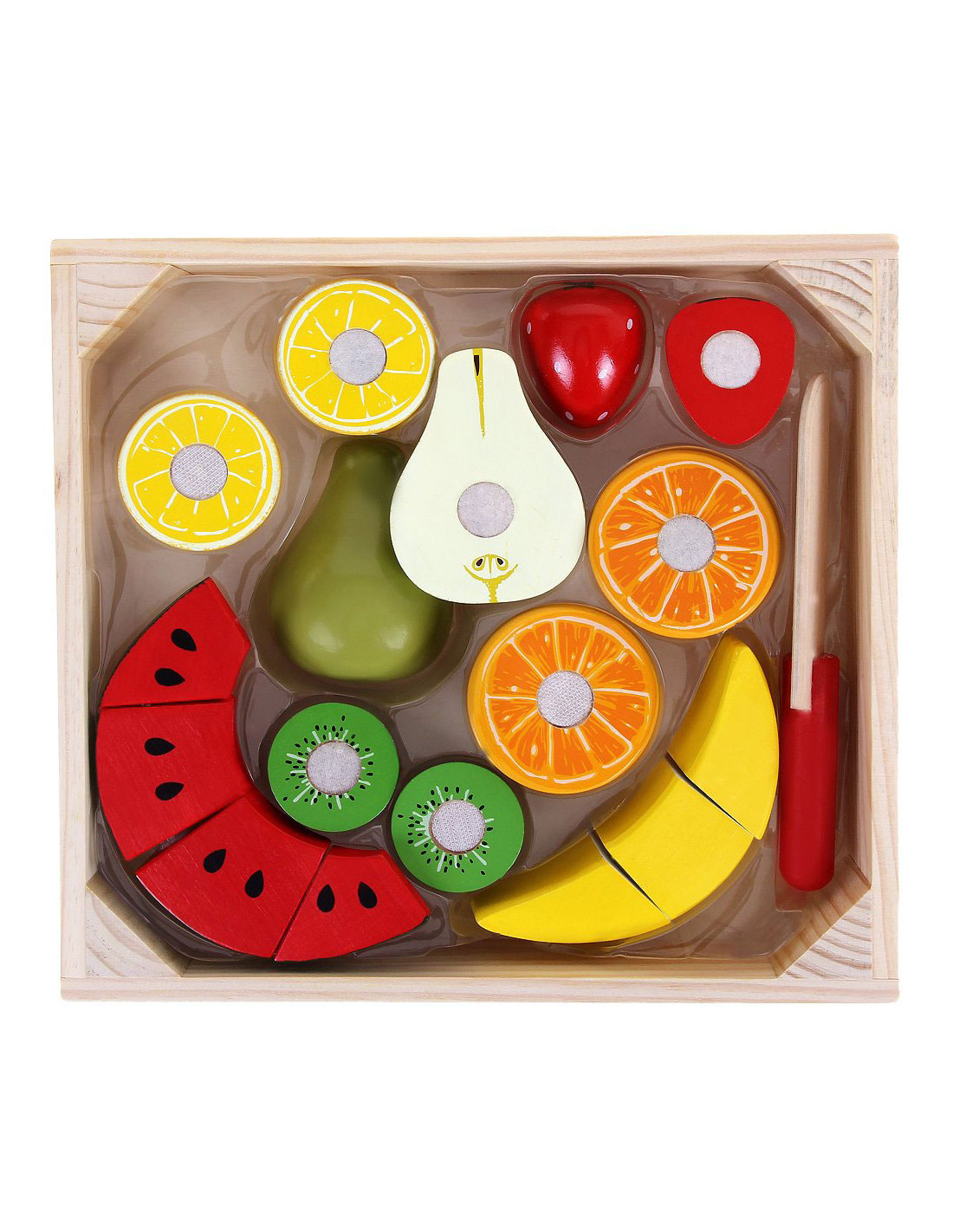 Ahogy azt mind tudjátok, ...Kés, villa, olló, gyerek kezébe nem való!... �gy szól a mondóka, mely óva int az éles és hegyes eszközöktől, amíg fiatal vagy. De a Woody tervezőinek hála, most kipróbálhatjátok ezekkel a fa játékgyümölcsökkel és a hozzátartozó késsel, milyen lehet felszeletelni a dolgokat. Ha tetszett, akkor illeszd össze őket a tépőzárnál és jöhet a következő kör.