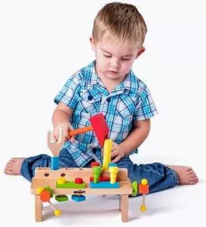 Woodyland gyermek műhely fa munkapad szerszámokkal egy kreatív és fejlesztő játék, amely bevezeti a gyerekeket a barkácsolás világába. Tartós fa kivitel biztosítja a stabil használatot, miközben a valósághű szerszámok - kalapács, csavarhúzó, csavarkulcs és egyéb kiegészítők - élethű játékélményt nyújtanak. A praktikus munkapadon gyerekek szerelhetnek, építhetnek és alkothatnak, miközben fejlődik a kézügyességük, a kreativitásuk és a logikus gondolkodásuk. Kompakt, mégis tágas kialakításának köszönhetően könnyen elhelyezhető a gyerekszobában. Mérete: 55 x 30 x 25 cm, 3 éves kortól ajánlott, tökéletes ajándék kis barkácsolóknak, szerepjátékhoz és mindennapi kreatív szórakozáshoz.